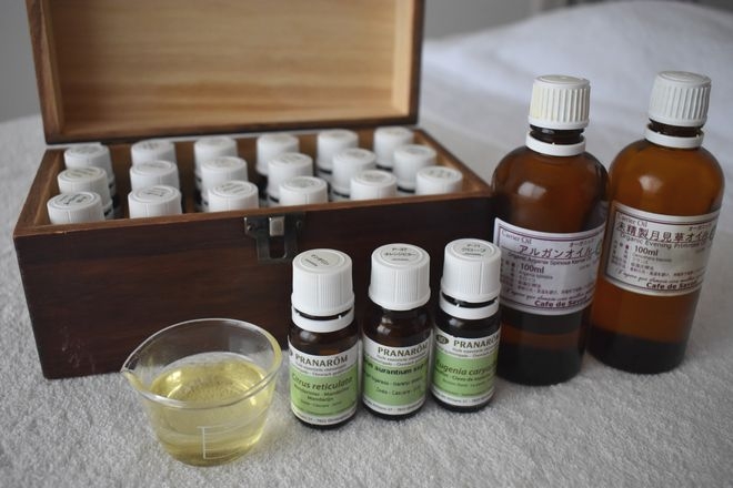 美花草オリジナルのアロマトリートメントは、一人一人のお悩みに合わせまして精油を選び、3種類ほどブレンドして作ります。