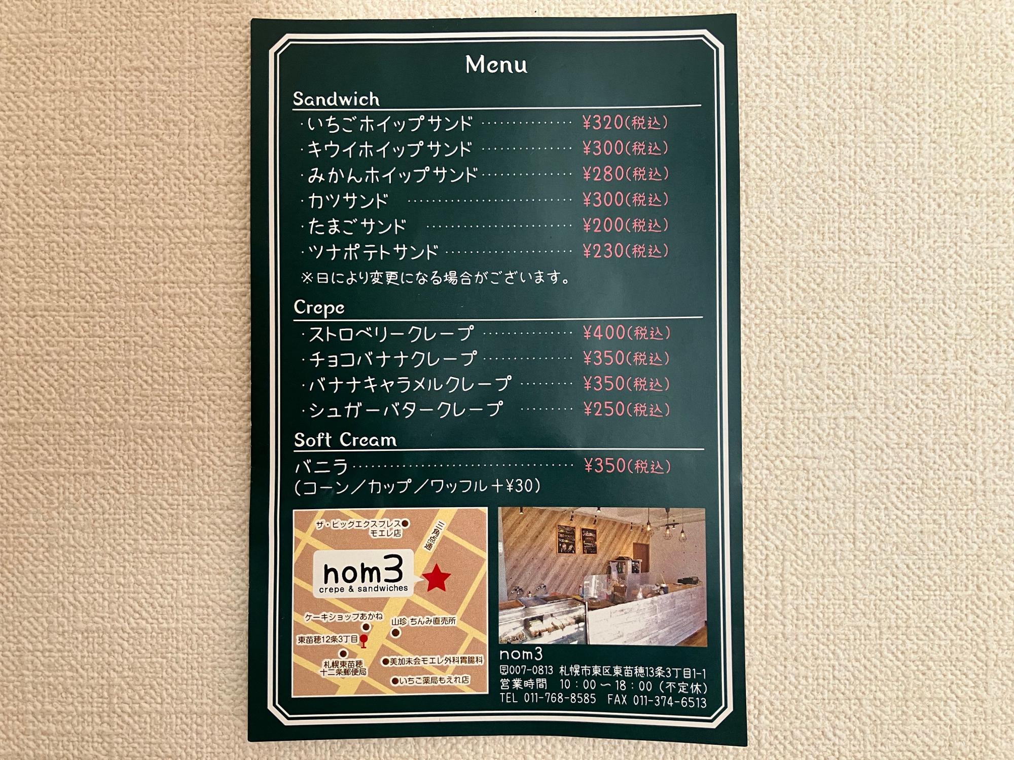 【札幌市東区】お客さんが途切れないクレープとサンドイッチのお店「nom3」。